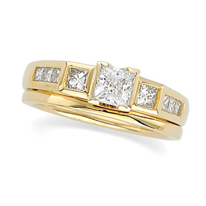 | (PC13) Princess Cut Engagement Ring Wedding Band |